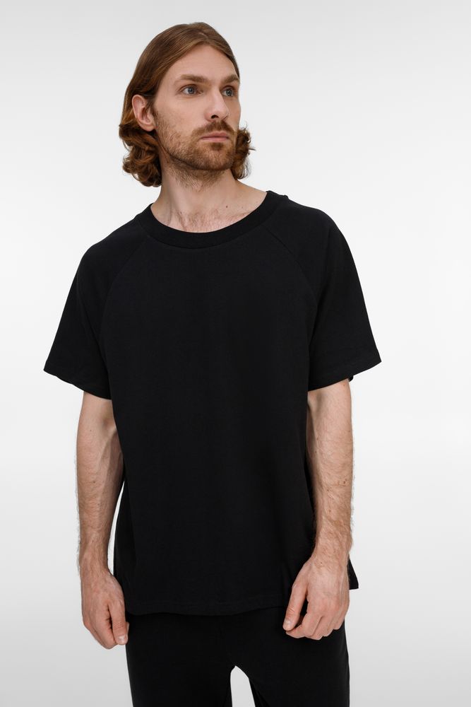 Футболка унисекс свободного кроя с рукавами реглан.P- Воротник из основного полотна тон в тон