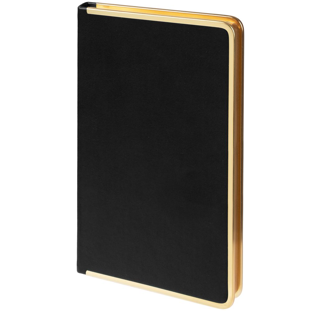 Изящный ежедневник с зауженным блоком и стильными деталями металлической окантовкой на обложке и металлизированным обрезом.