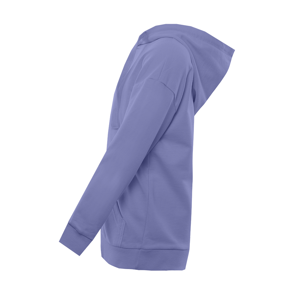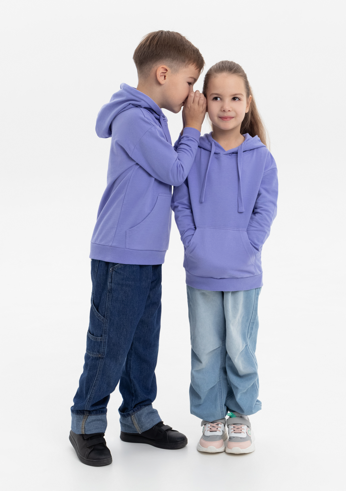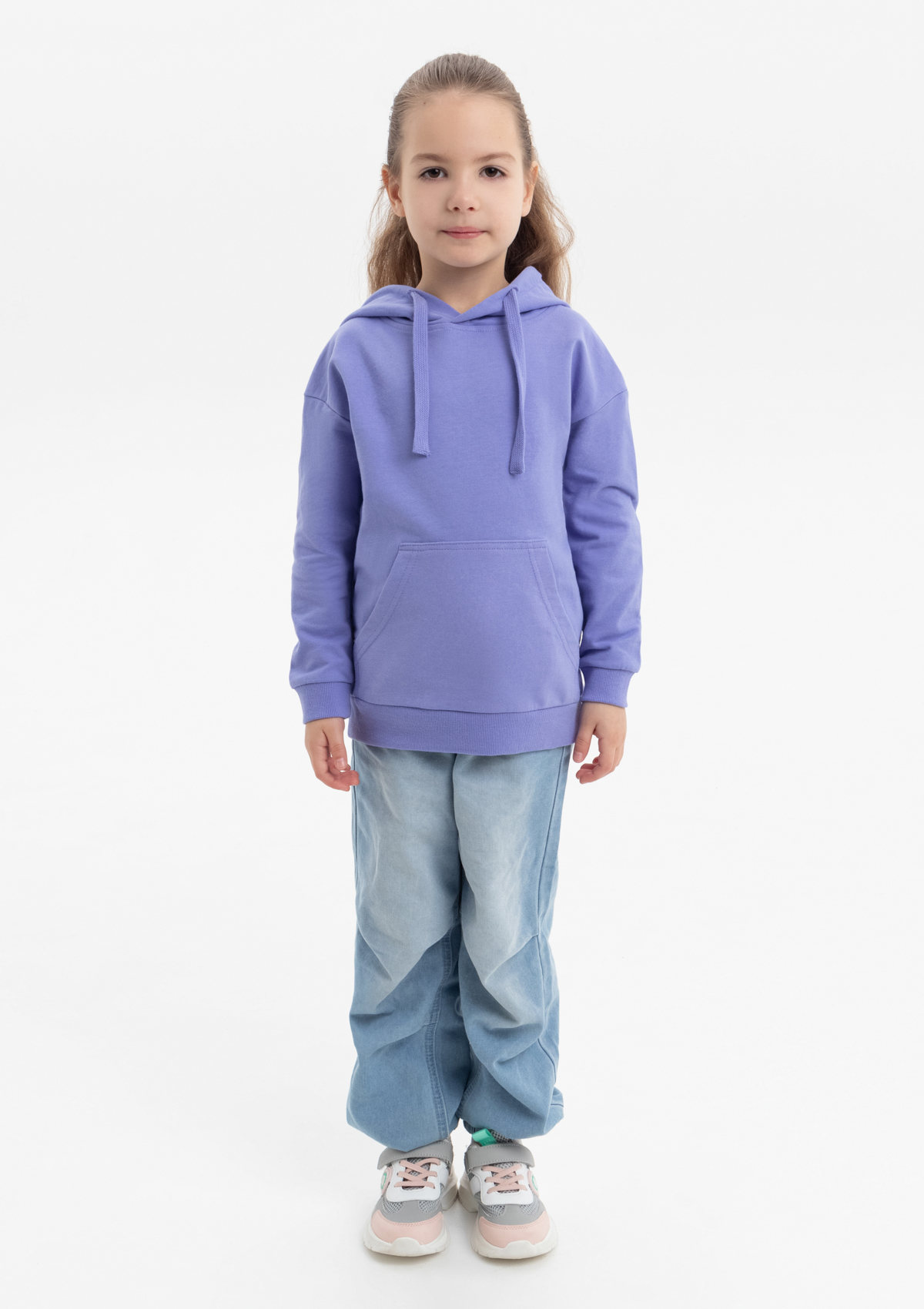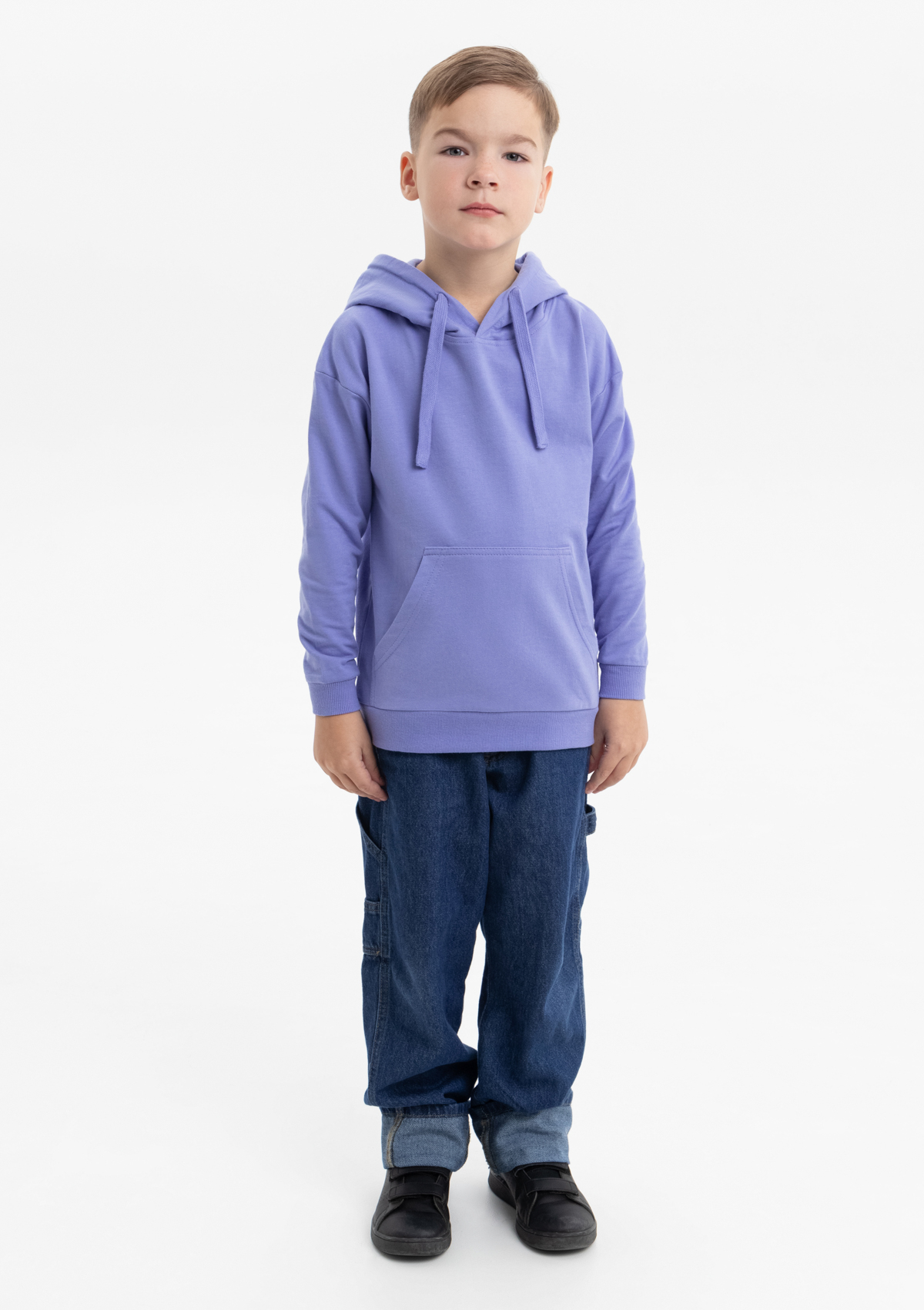 Модель прямого силуэта с капюшоном комфортной глубины, спущенной линией плеча и накладным карманом-кенгуру. Капюшон регулируется плоским шнуром, горловина спинки усилена киперной лентой. Манжет и низ изделия выполнены широкой эластичной резинкой в тон основному цвету.<br />
