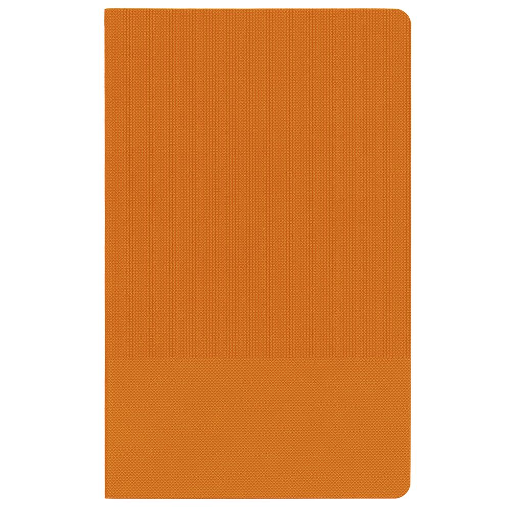 Ежедневник с гибкой обложкой, выполнен из материала Canyon, оранжевый ОО, дополнен ляссе в цвет обложки. Блинтовое тиснение на обложке создает эффект вязаного полотна.