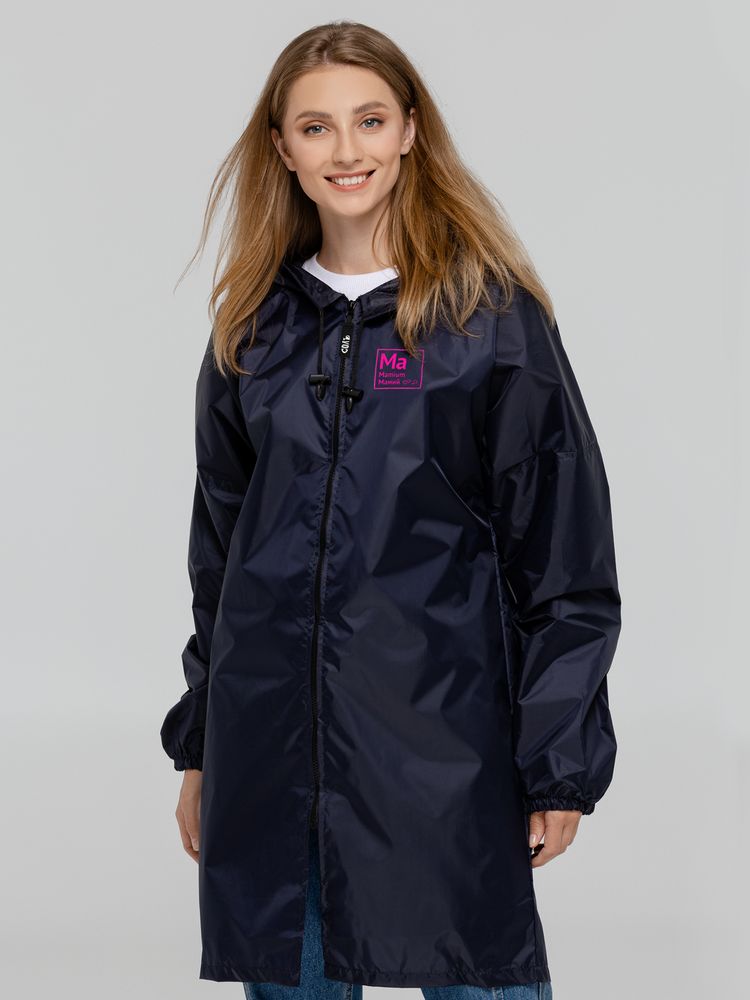 Плащ-дождевик из ткани таффета на молнии с капюшоном. Складывается в мешочекP удобно брать с собой.