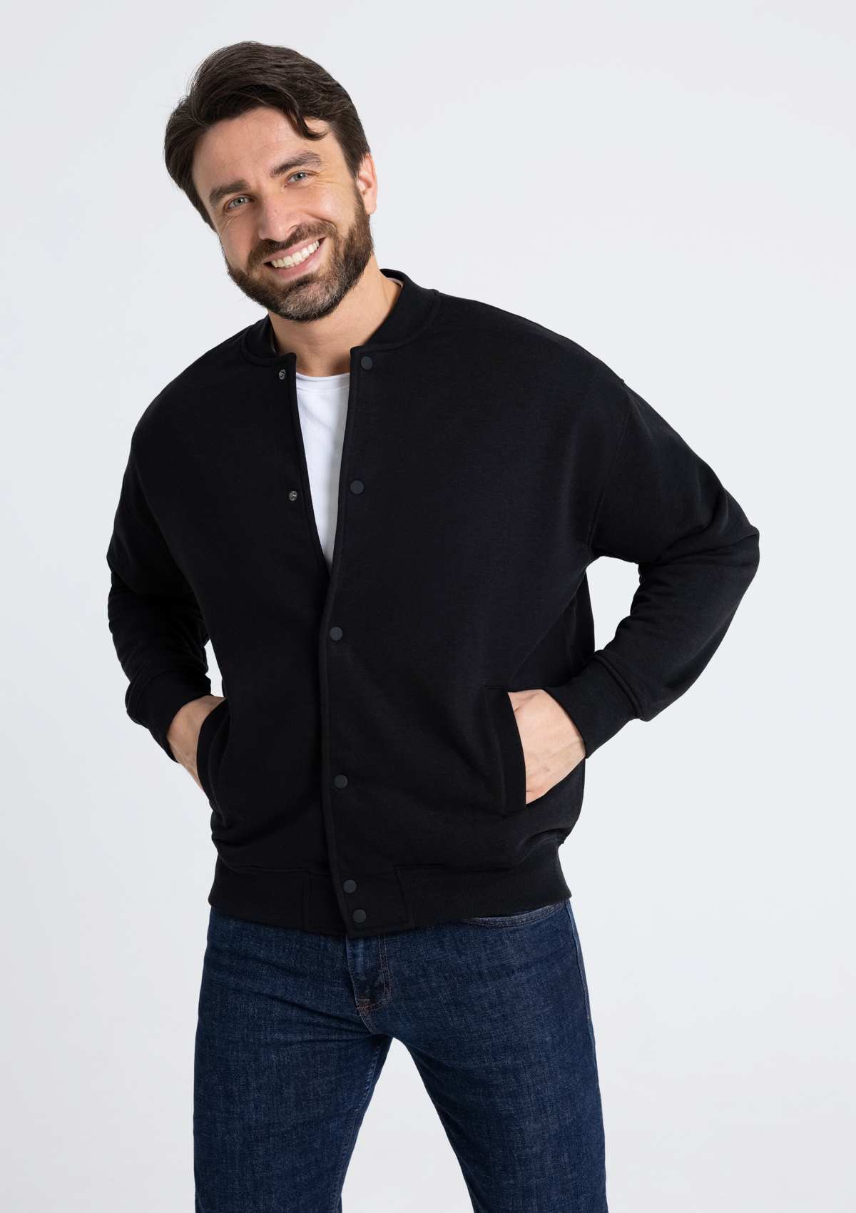 Главная / Каталог / Текстиль Stan / Футболки Stan / Бомбер унисекс STAN футер без начеса 340, 70 (Чёрный, 46/S)