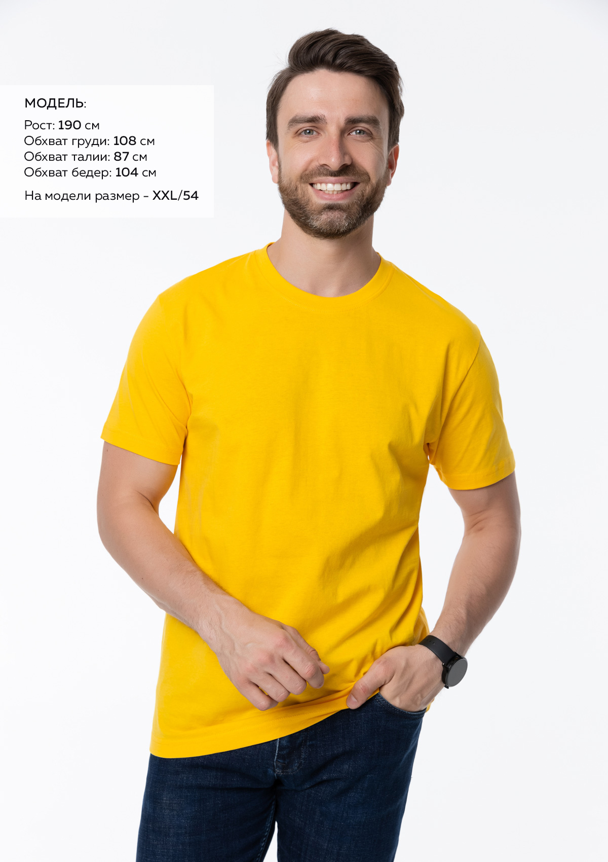Размер мужской футболки: XXL/54. Параметры модели: рост 190 см.; обхват груди 108 см.; обхват талии 87 см.; обхватPбедерP104Pсм.Характеристики: