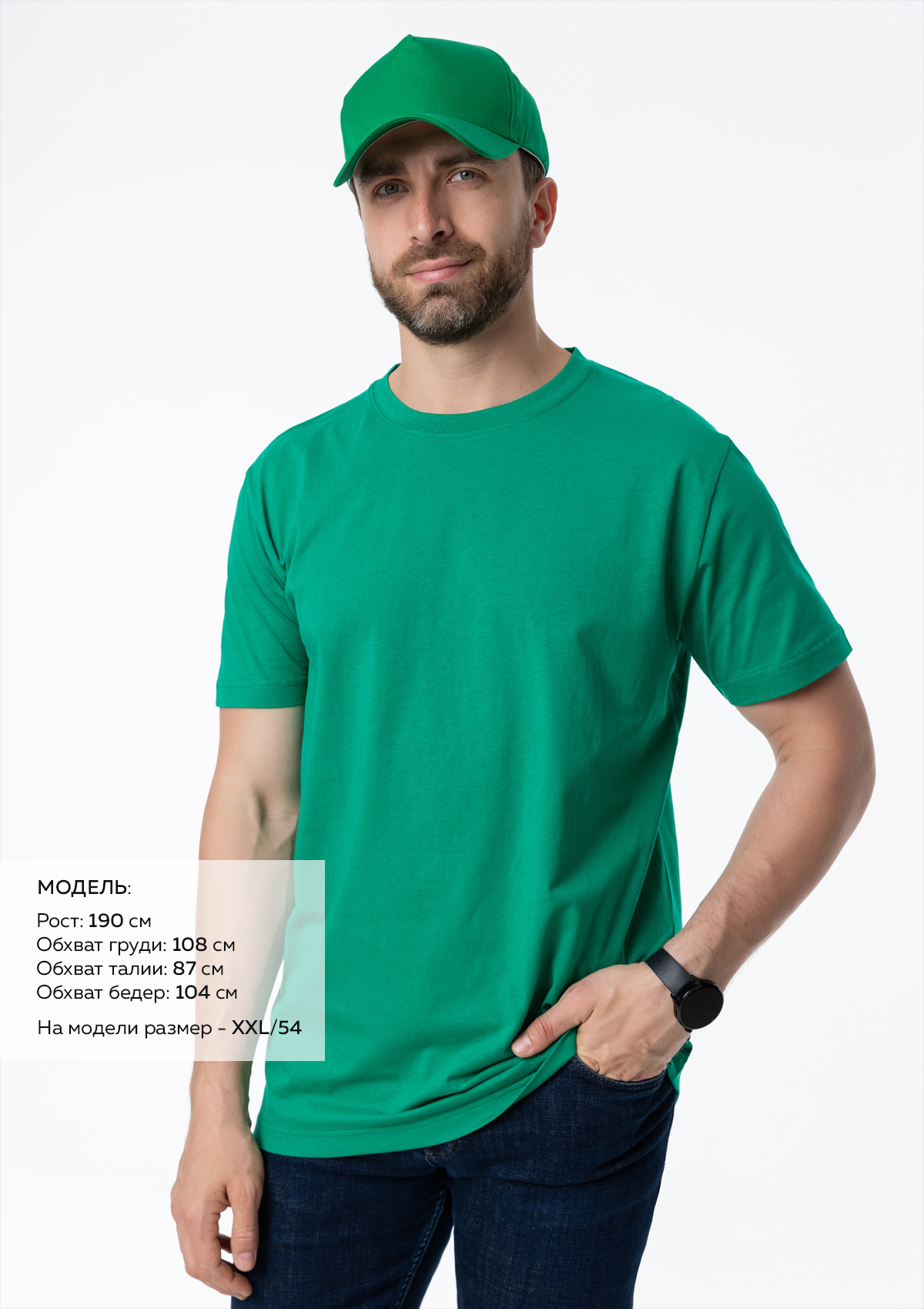 Размер мужской футболки: XXL/54. Параметры модели: рост 190 см.; обхват груди 108 см.; обхват талии 87 см.; обхватPбедерP104Pсм.Характеристики: