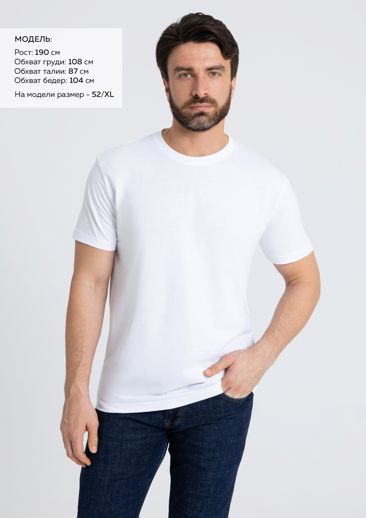 Лаконичный крой, внимание к деталям и лояльность к большей части технологий нанесения универсальная модель воплотит в реальность ваши креативы, порадует качеством и комфортом.<br /> <br /> Мужская футболка прямого силуэта с округлым воротом и втачным рукавом. <br /> <br /> Футболка выполнена из мягкого и прочного полотна из 100&#37; хлопка. Материал обладает отличными влагоотводящими и воздухопроницаемыми свойствами. Ткань легкая и приятная к телу.<br /> <br /> Размер мужской футболки: 52/XL. Параметры модели: рост 190 см.; обхват груди 108 см.; обхват талии 87 см.; обхват бедер 104 см.
