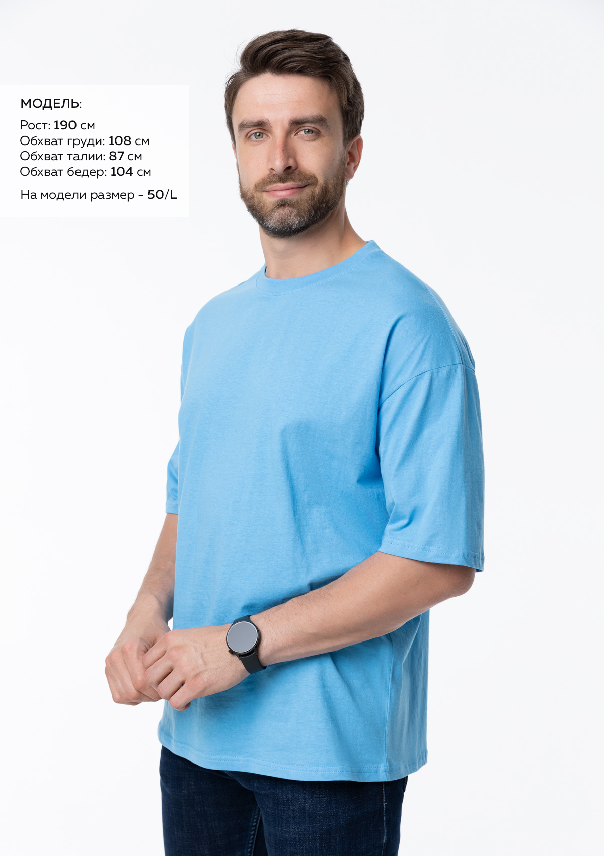 Главный тренд последних сезонов, футболка в стиле oversize, привлекает внимание благодаря непринужденному крою, натуральному составу и демократичной стоимости. В сочетании с вашим авторским дизайном, модель станет сокрушительным аргументом на любом event-мероприятии, спортивном соревновании или студенческом слете.<br /> <br /> Свободная футболка силуэта-oversize с округлым воротом и спущенной линией плеча. Универсальная модель идеально впишется как в мужской, так и в женский гардероб.<br /> <br /> Изделие изготовлено из мягкого и комфортного к телу материала кулирная гладь. Материал не теряет форму, не мнется даже при активной носке. Футболка воздухопроницаемая, приятная на ощупь и не пилингуется после стирок.<br /> <br /> Размер мужской футболки: 50/L. Параметры модели: рост 190 см.; обхват груди 108 см.; обхват талии 87 см.; обхват бедер 104 см.