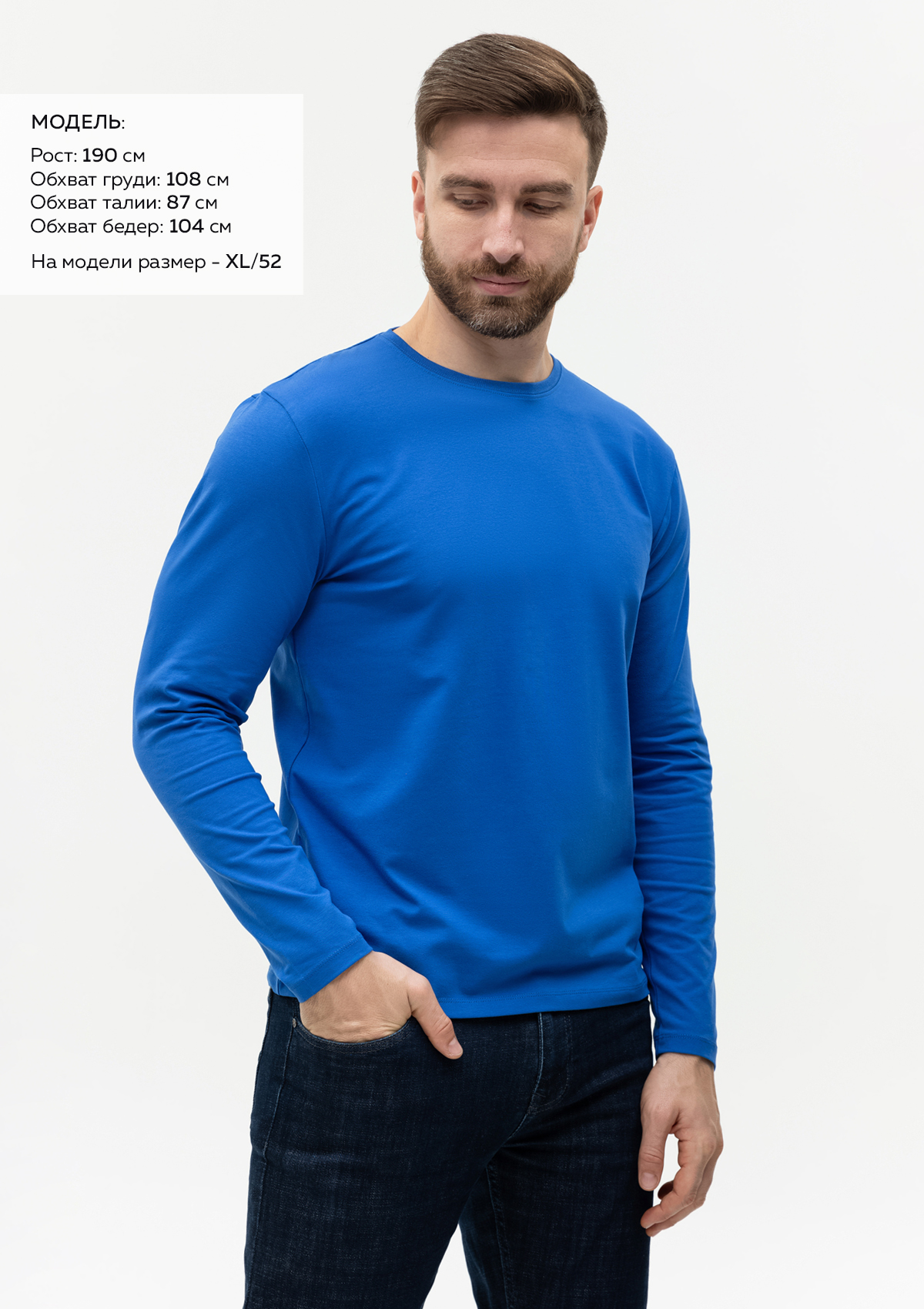 Тонкая футболка с длинным рукавом, стильная и практичная, станет идеальным фоном как для яркого креатива, так и для деликатного дизайна. Какие бы цели вы не поставили, будь то повышение узнаваемости бренда, привлечение внимания к социально значимому проекту или поддержка любимой команды модель станет надежным помощником в их достижении.<br /> <br /> Универсальная футболка прямого силуэта с округлым воротом и длинным втачным рукавом. Плечевые швы и шов горловины усилены настрочной бейкой из основного полотна.<br /> <br /> Изделие выполнено из мягкого и плотного материала кулирная гладь &#40;92&#37; хлопок, 8&#37; эластан&#41;. Ткань хорошо пропускает воздух и впитывает влагу. Благодаря добавлению эластана изделие отлично тянется, практически не мнется и не скатывается.<br /> <br /> Размер на модели: XXL/54. Параметры модели: рост 190 см.; обхват груди 108 см.; обхват талии 87 см.; обхват бедер 104 см.