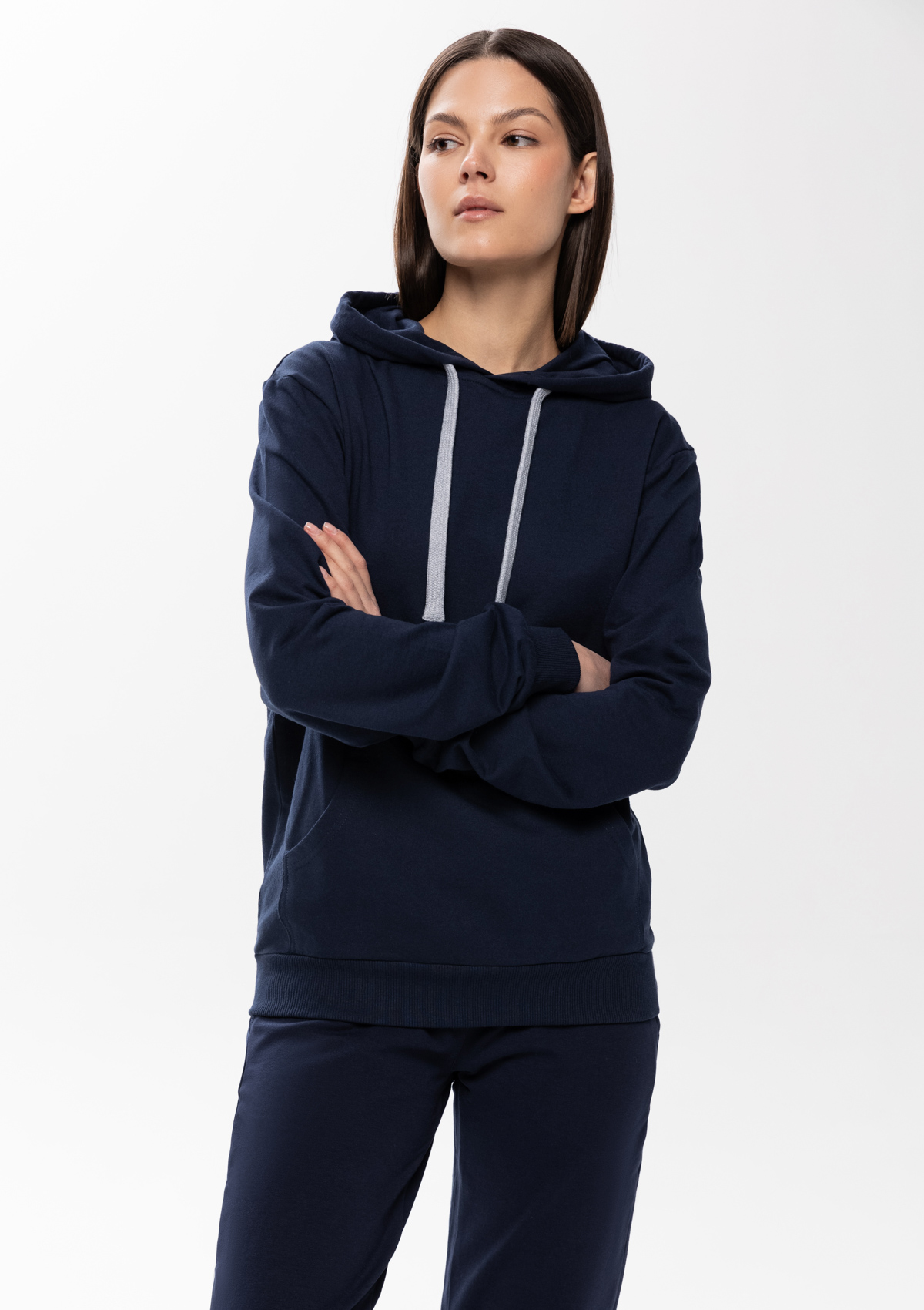 Размер женского худи: XXS/42. Параметры модели: рост 173 см.; обхват груди 80 см.; обхват талии 58 см.; обхват бедер 89 см.<br />