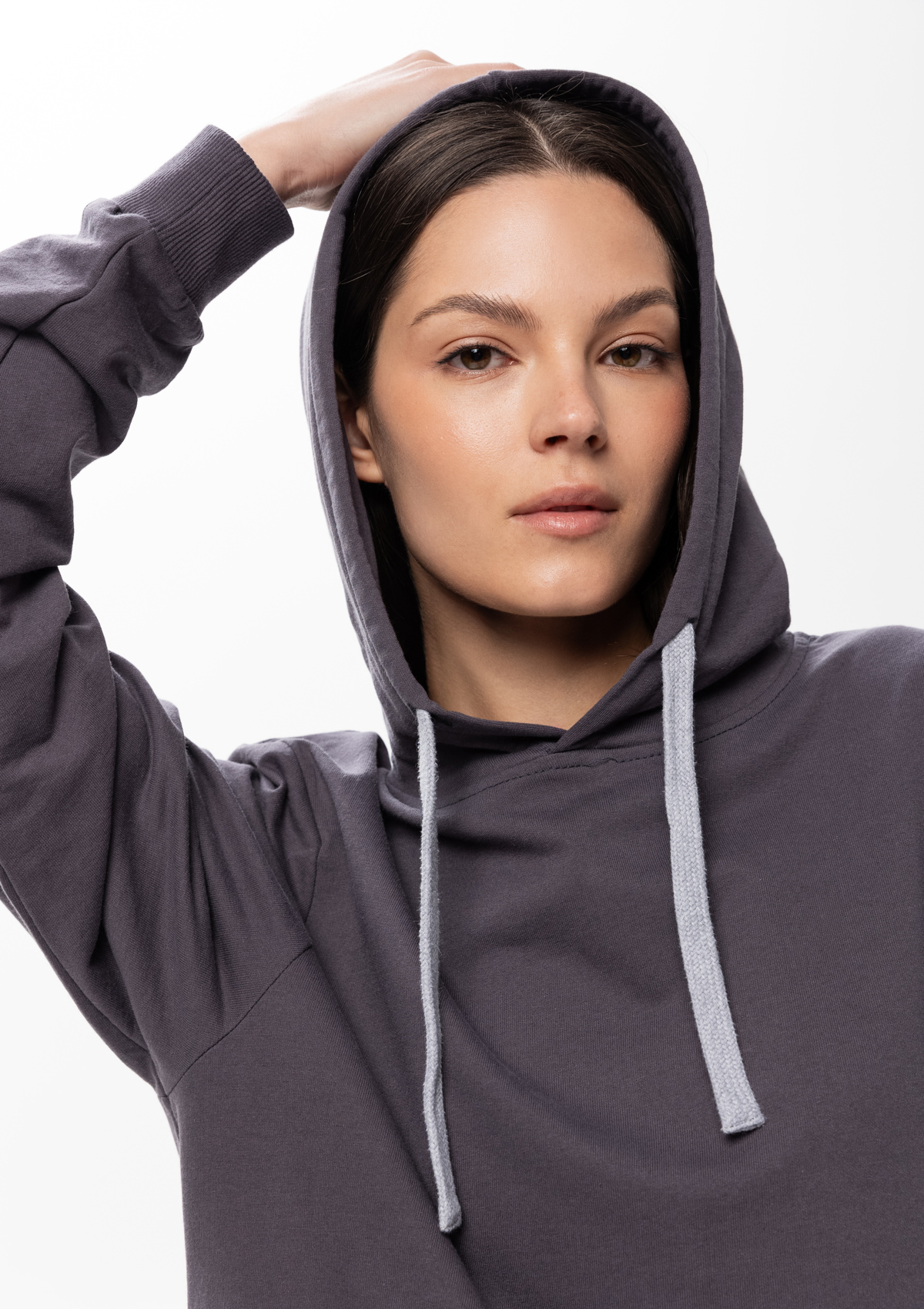 Размер женского худи: XXS/42. Параметры модели: рост 173 см.; обхват груди 80 см.; обхват талии 58 см.; обхват бедер 89 см.<br />