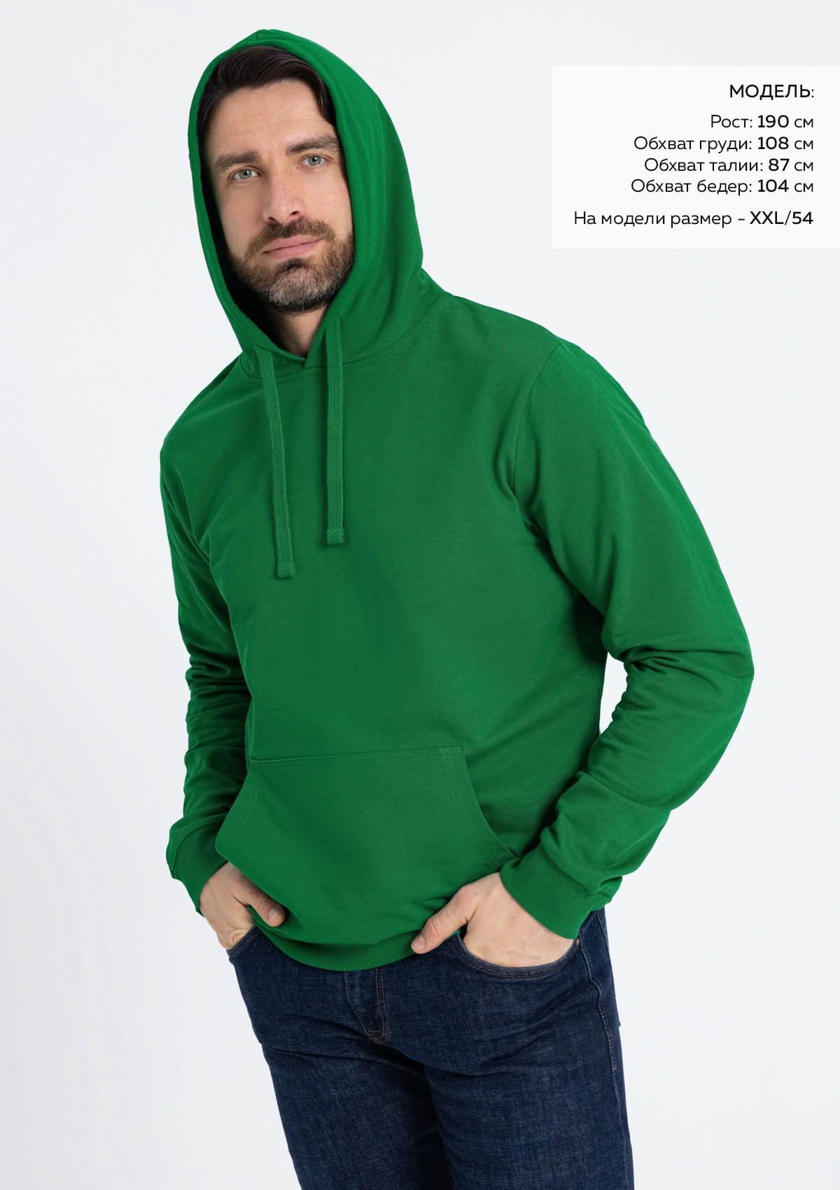 Размер мужского худи: XL/52. Параметры модели: рост 190 см.; обхват груди 108 см.; обхват талии 87 см.; обхват бедер 104 см.Характеристики: