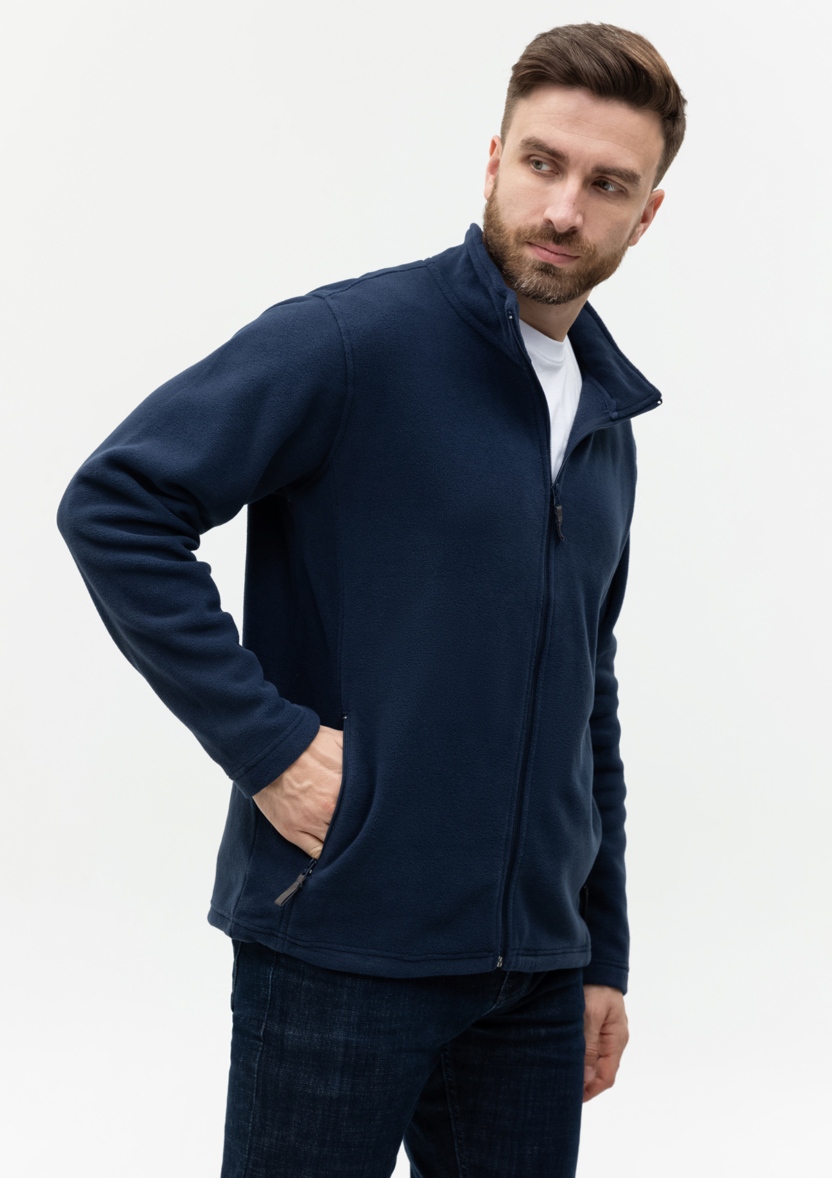 Теплая невесомая олимпийка поможет обеспечить комфорт и рабочую атмосферу внутри коллектива даже в неприветливую погоду, станет завершающим штрихом в ярком образе вашей организации на рекламных и спортивных мероприятиях.<br /> <br /> Олимпийка прямого силуэта с воротником-стойкой, прорезным карманом и застежкой на молнию с контрастным бегунком. Лаконичный крой дополнен функциональными элементами: внутренний функциональный карман и кулиса по линии низа изделия для дополнительной защиты от холода и ветра. <br /> <br /> Олимпийка выполнена из мягкого согревающего микрофлиса плотностью 200гр/м2 отлично сохраняет тепло, поглощает и отводит влагу.<br /> <br /> Размер на модели: XL/52. Параметры модели: рост 190 см.; обхват груди 108 см.; обхват талии 87 см.; обхват бедер 104 см.