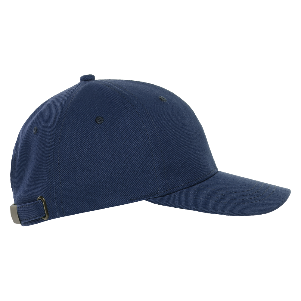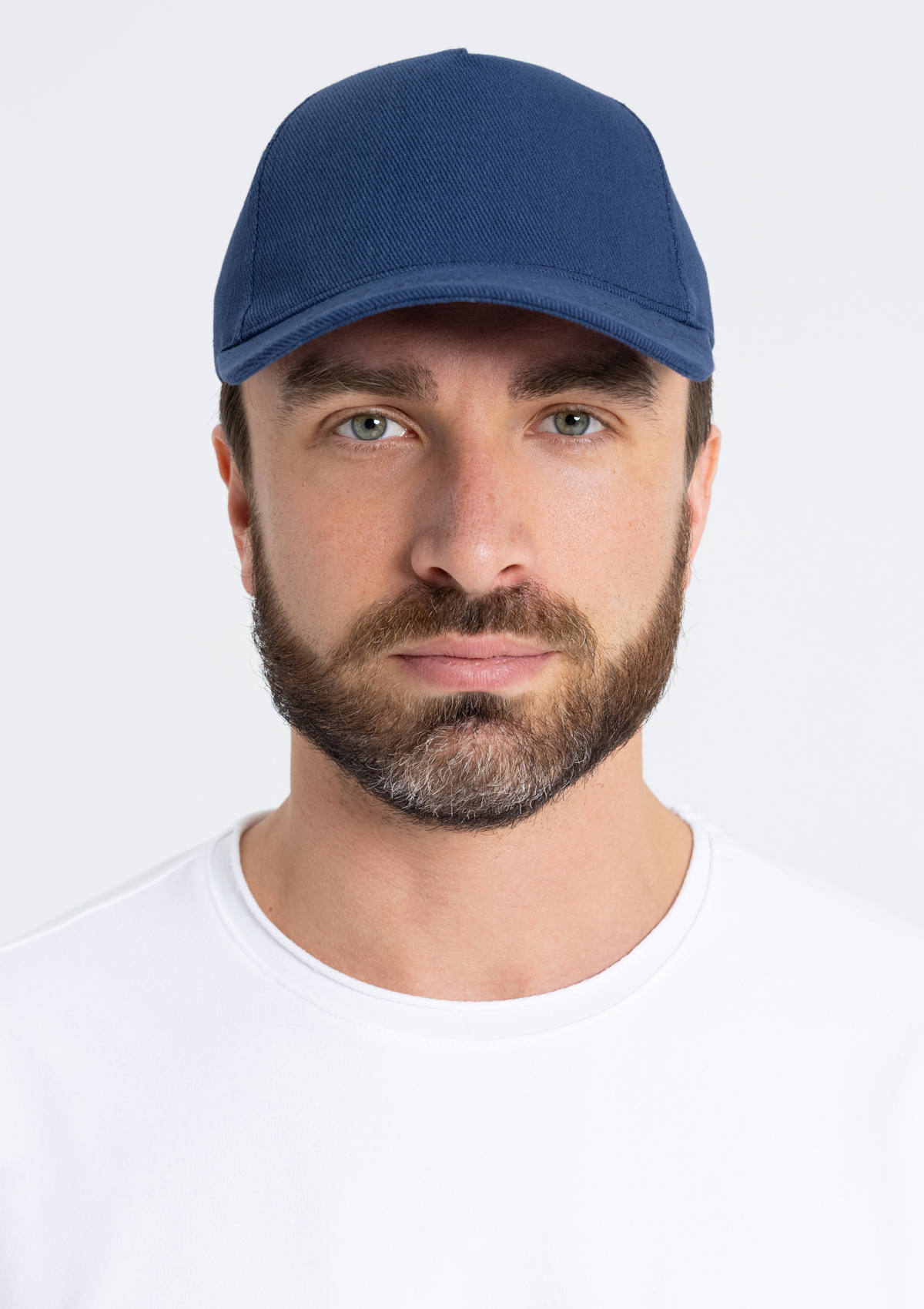 Бейсболка-пятиклинка без лобового шва с изогнутым жестким козырьком и регулируемой металлической застежкой. <br />