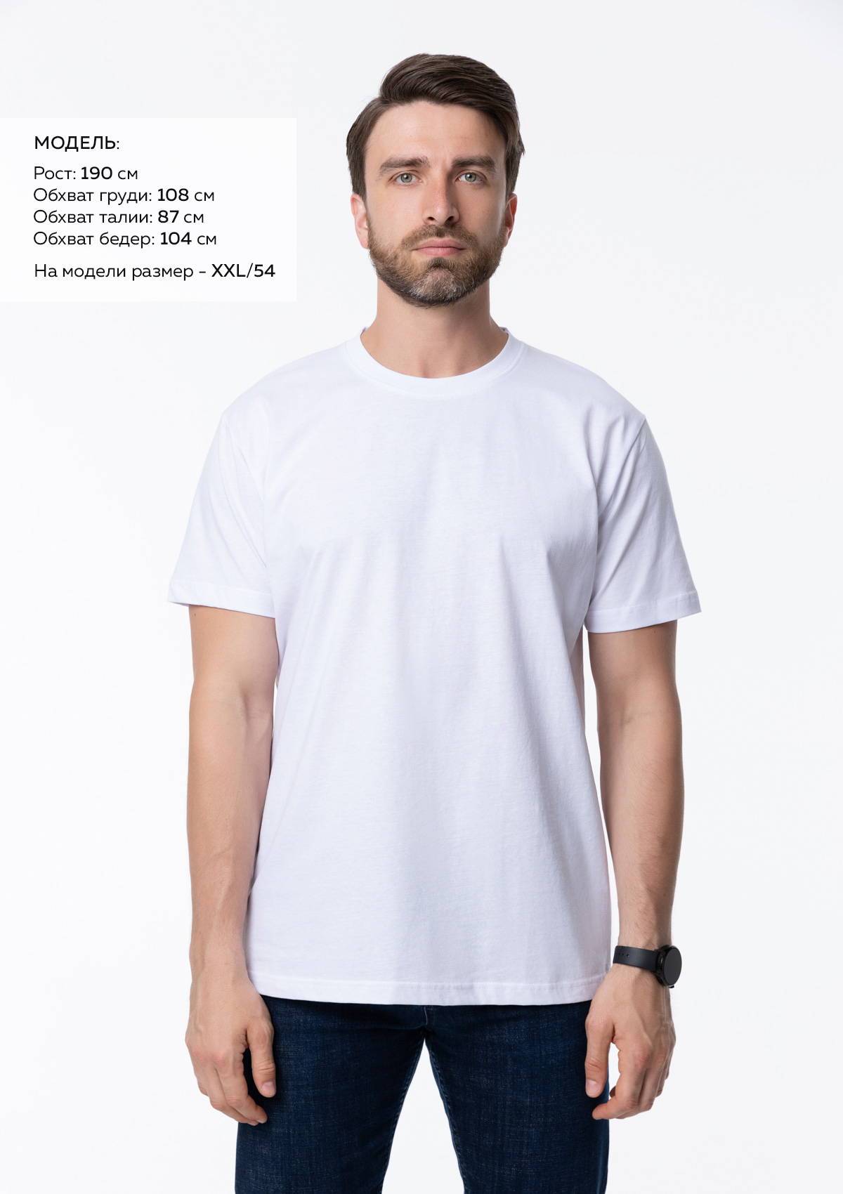 * Размер мужской футболки: XXL/54. Параметры модели: рост 190 см.; обхват груди 108 см.; обхват талии 87 см.; обхват бедер 104 см.Характеристики: