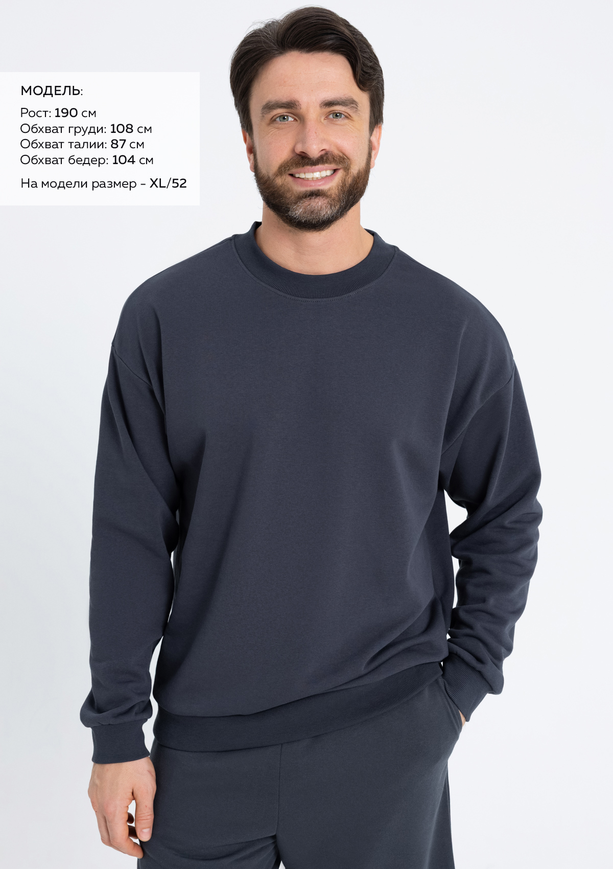 Комфортный оверсайз-свитшот не только стильный, но и практичный выбор для мероприятий и униформы. Их комфорт, универсальность и возможность брендирования делают их эффективным решением для любой компании. Свитшоты легко комбинируются с различными элементами одежды, что позволяет создавать стильные и профессиональные образы.<br /> <br /> Свитшот расслабленного кроя с широкой горловиной, спущенной линией плеча и манжетами на рукавах по нижнему краю изделия.<br /> <br /> Футер 3 нитка &#40;80&#37; хлопок, 20&#37; полиэстер&#41; мягкий и приятный на ощупь материал, который обеспечивает высокий уровень комфорта. Он хорошо дышит, что позволяет организаторам мероприятий и сотрудникам чувствовать себя комфортно в течение всего дня. <br /> <br /> Размер на модели: XL/52. Параметры модели: рост 190 см.; обхват груди 108 см.; обхват талии 87 см.; обхват бедер 104 см.
