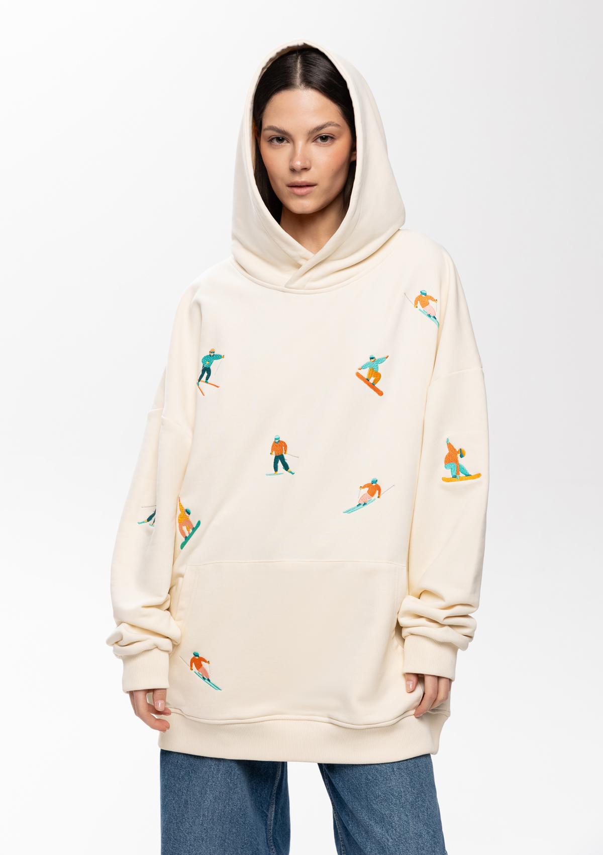 Универсальная толстовка свободного силуэта с капюшоном комфортной глубины, спущенной линией плеча и глубоким карманом-кенгуру. Манжет и низ изделия оформлены широкой эластичной резинкой. <br />